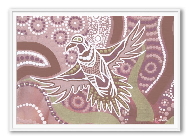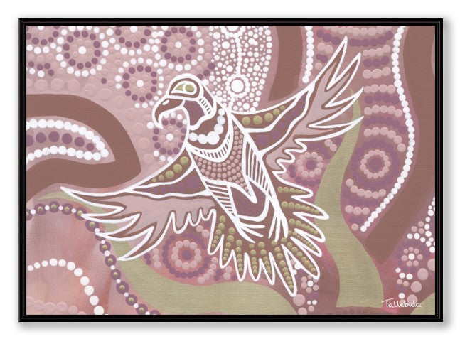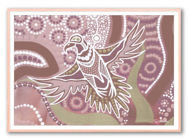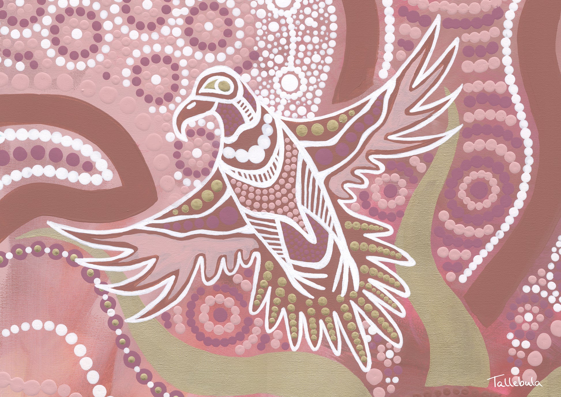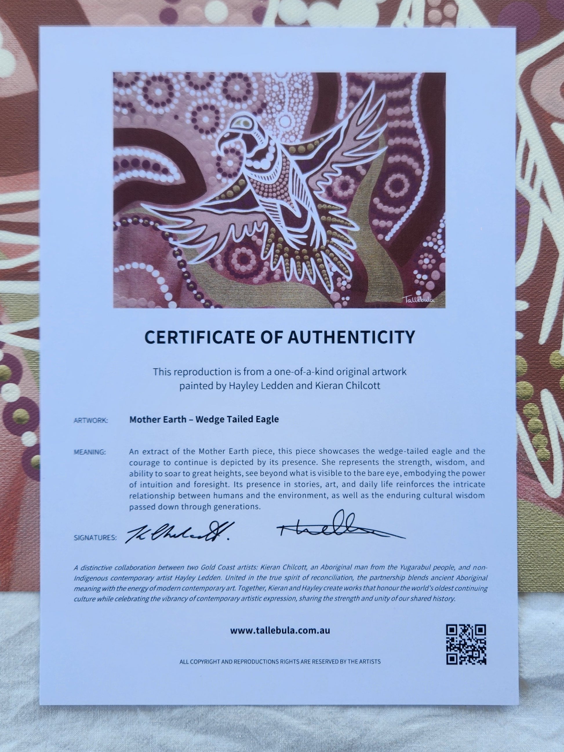 An extract of the Mother Earth piece, this piece showcases the wedge-tailed eagle and the courage to continue is depicted by its presence. She represents the strength, wisdom, and ability to soar to great heights, see beyond what is visible to the bare eye, embodying the power of intuition and foresight.
